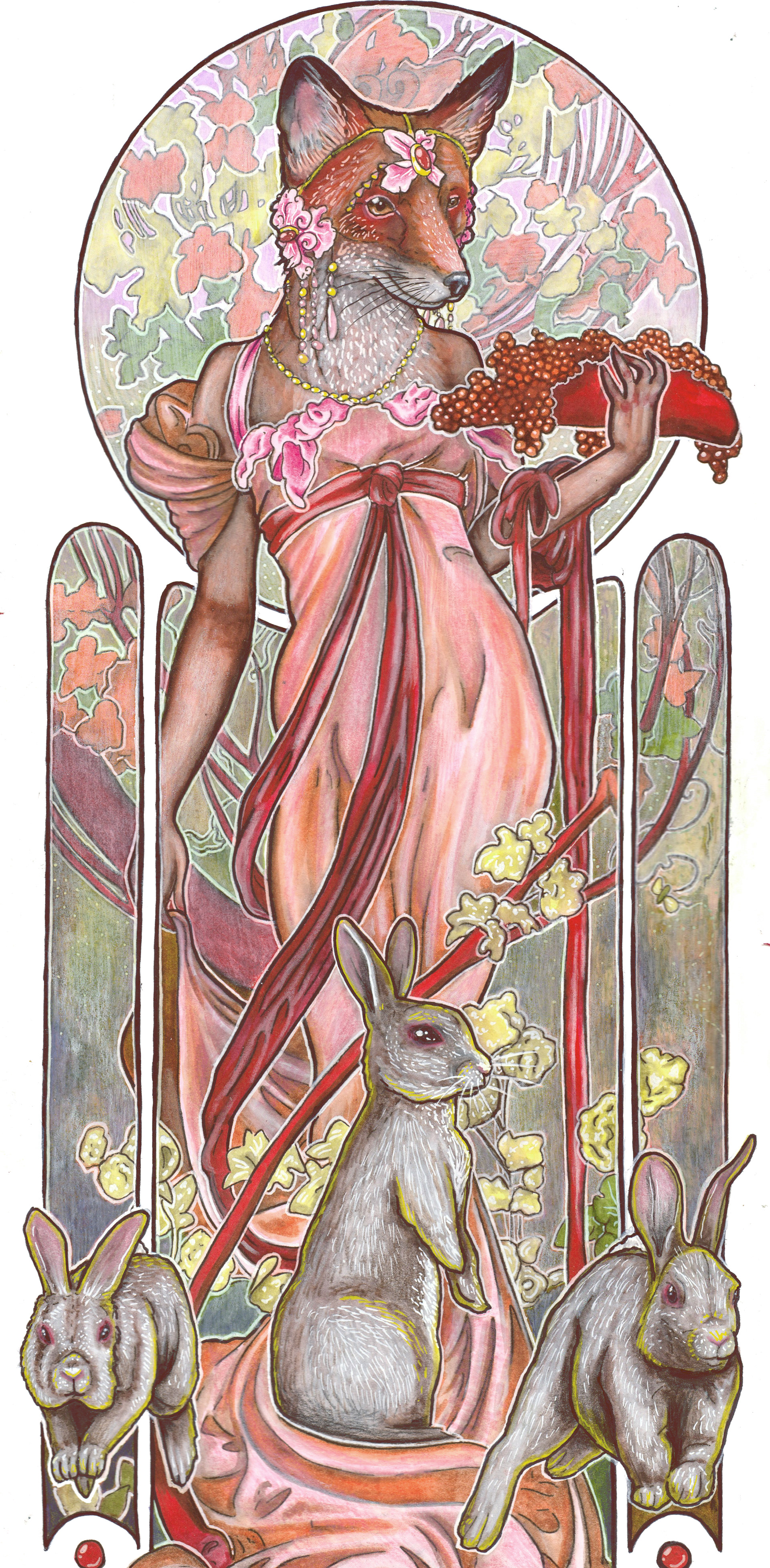 Art Nouveau Animal Series - Anthropomorphic creatures in the style of Alphonse Mucha's famous paintings.