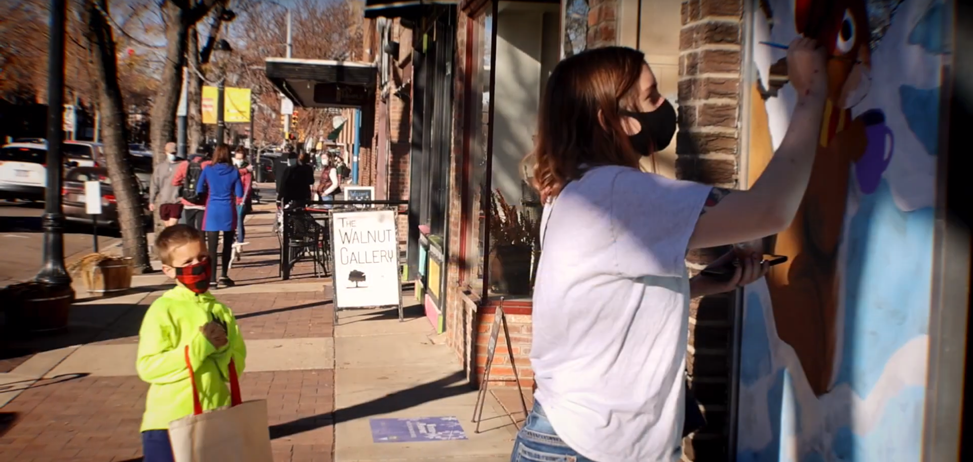 Loveland Creates, CO - (2023) Hand painted several windows on the corner of an empty building to make it more colorful and lively for the holiday season.